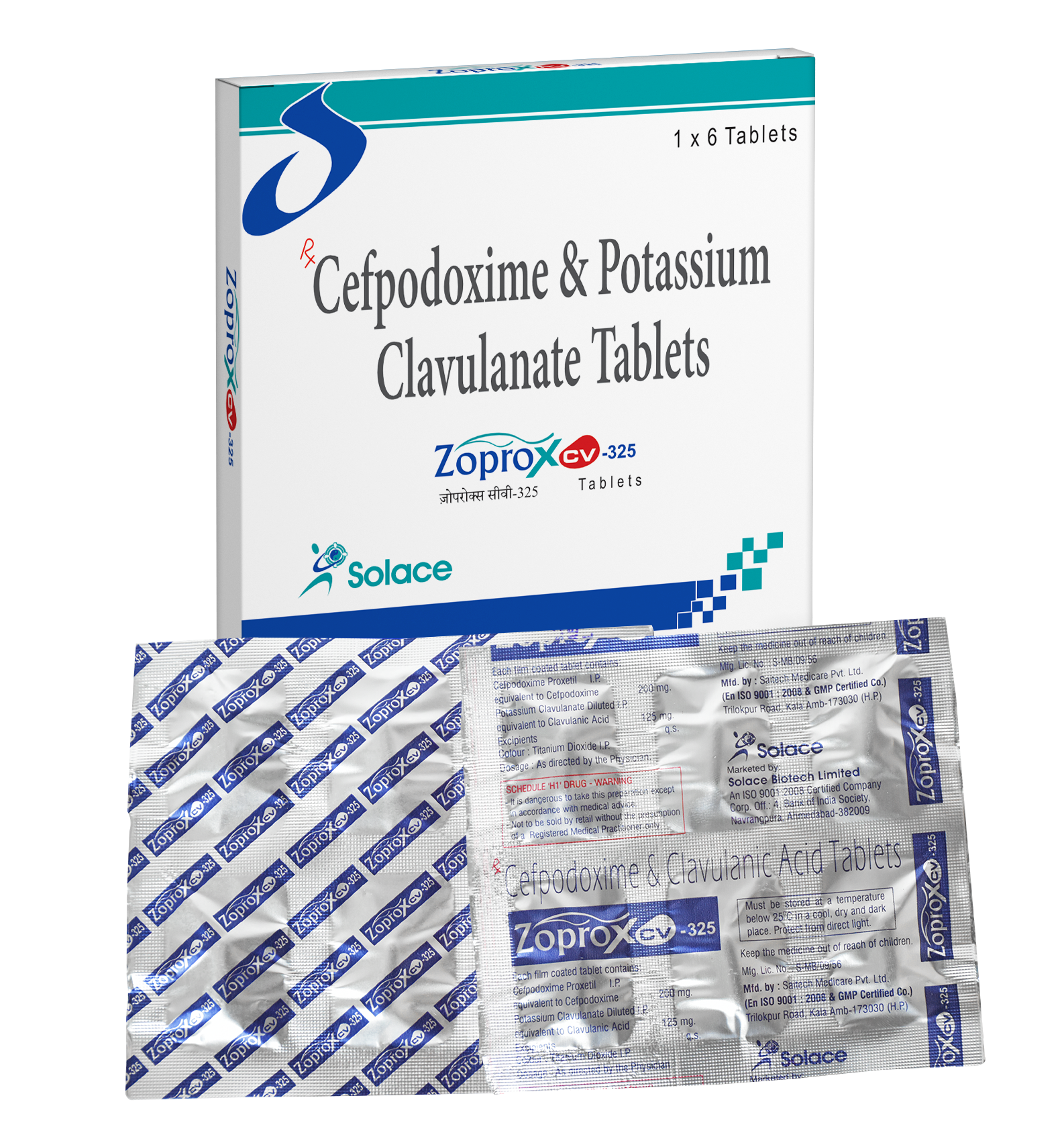 Zoprox-CV provides the combination of Cefpodoxime and Clavulanic acid. This combination is effective against many infections. The presence of clavulanic acid is highly essential as this combination prevents the hydrolysis of cefpodoxime in presence of beta lactamase releasing micro-organisms which causes the increase in effectiveness and spectrum of cefpodoxime.