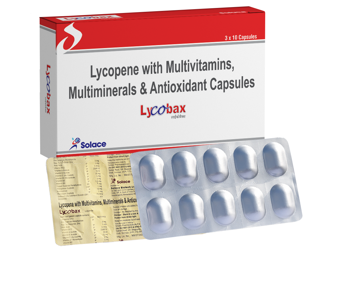 Lycobax Capsule is a comprehensive formulation, designed to support overall health and well-being. Enriched with a blend of essential vitamins and minerals, this formulation is crafted to provide antioxidant protection through Lycopene, supporting cardiovascular health and promoting a robust immune system. Zinc, along with a combination of B vitamins, contributes to energy metabolism, nerve function, and red blood cell formation. The inclusion of Copper Sulphate, Selenium, and Manganese Sulphate enhances overall mineral balance, while Folic Acid supports cellular division and the formation of genetic material. Lycobax Capsule provides a well-rounded nutritional supplement to address diverse health needs. Lycobax Capsule helps to support vitality, immunity, and the maintenance of essential physiological functions.