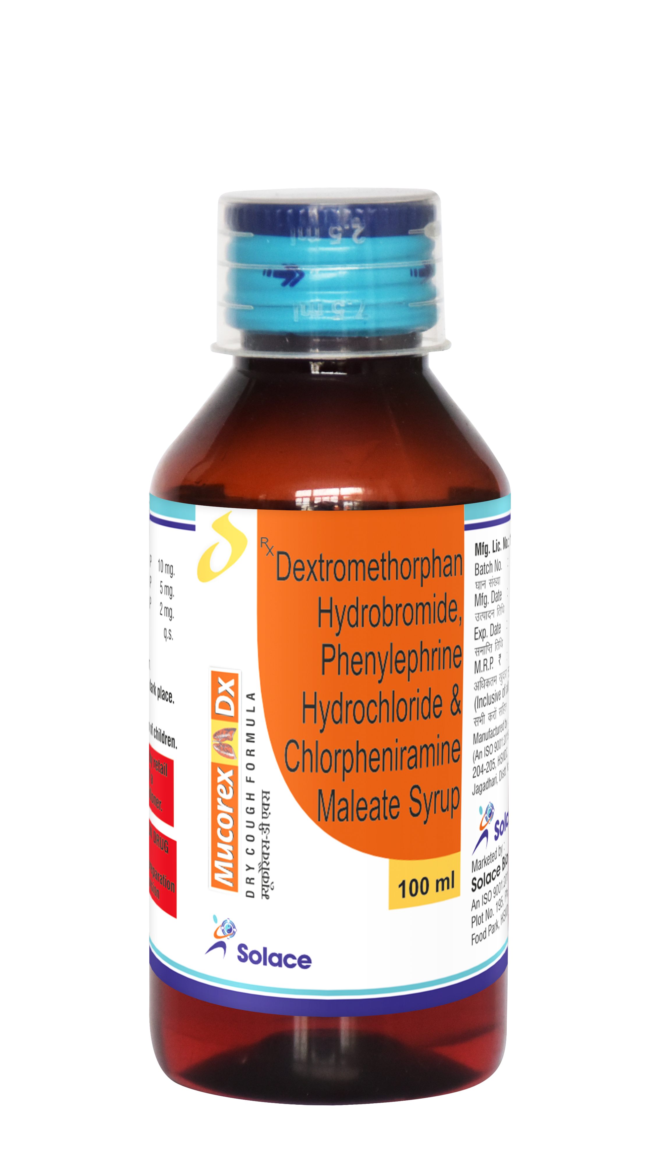 Mucorex DX syrup contains dextromethorphan hydrobromide, cetirizine and phenylephrine hydrochloride and menthol.